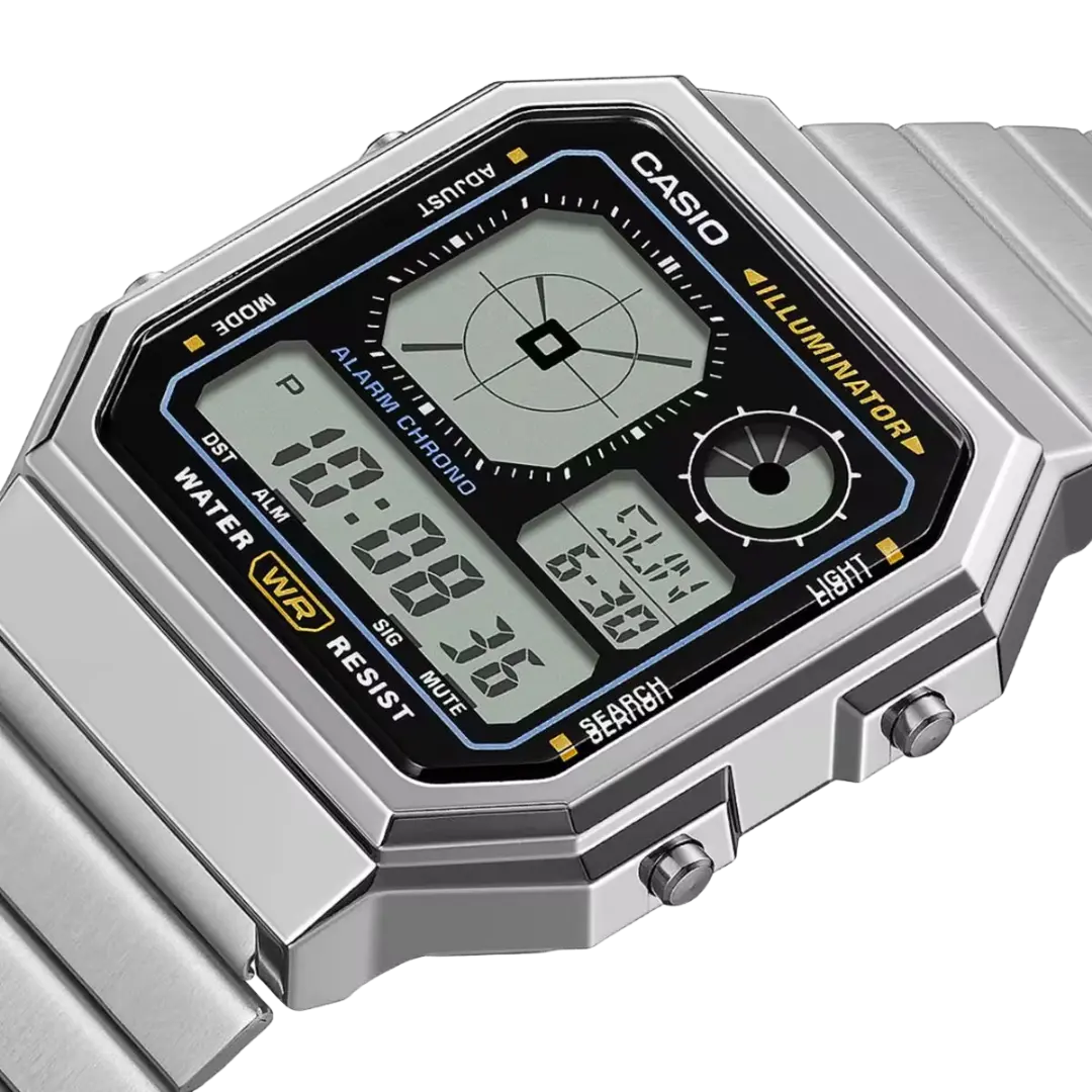 The A130WE-1A showcases a multi-section LCD display that enhances its vintage appeal. Its eye-catching face design offers both style and easy readability, making it perfect for those who appreciate statement accessories.