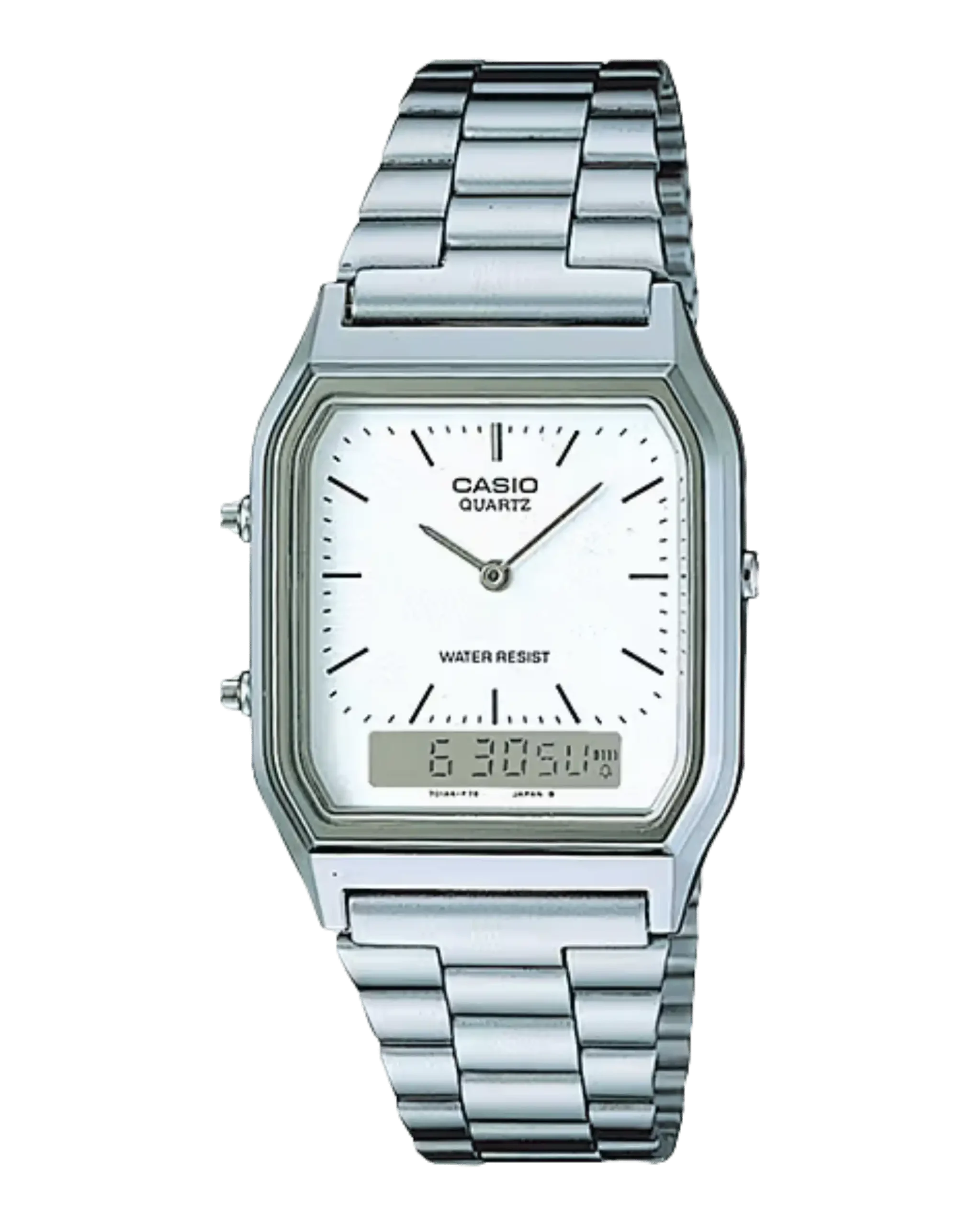 CASIO AQ-230A-7DMQ – Classic Retro Analog-Digital Watch with Silver Stainless Steel Band