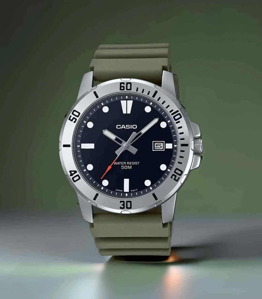 Casio MTP-VD01-3E – Sporty Design with Rugged Green Strap
