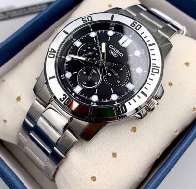 The Casio MTP-VD300D-1EVDF men’s watch is a perfect combination of durability, functionality, and modern style. Designed for men who prefer a bold yet sophisticated look, this watch features a stainless steel bracelet, a sleek black dial, and a multi-function display that enhances both practicality and visual appeal.