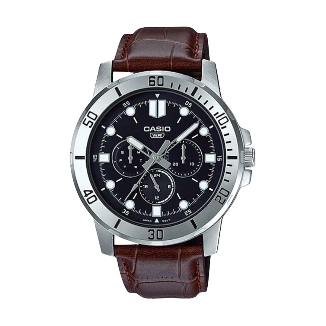 Casio MTP-VD300L-1EUDF Men’s Chronograph Watch – Black Dial with Brown Leather Strap