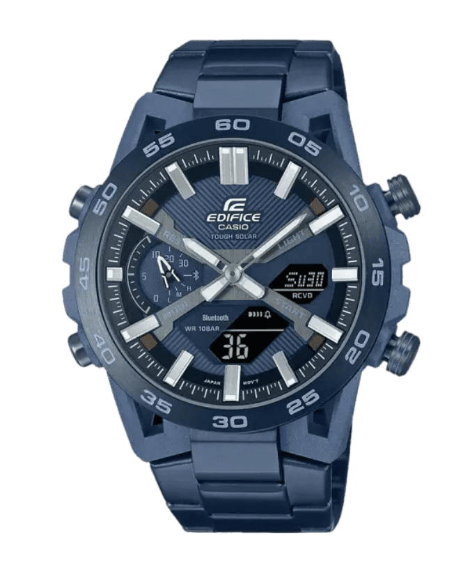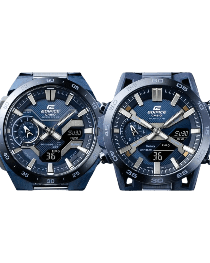 The Casio Edifice ECB-2000CB-2ADF brings motorsport technology and futuristic materials into a stunning wristwatch. With Bluetooth® Smart technology, solar power, and rugged carbon fiber construction, it’s a powerhouse for anyone seeking cutting-edge performance and bold design. Whether you’re racing on the track or navigating daily life, the ECB-2000CB-2ADF keeps you stylish, connected, and on time.