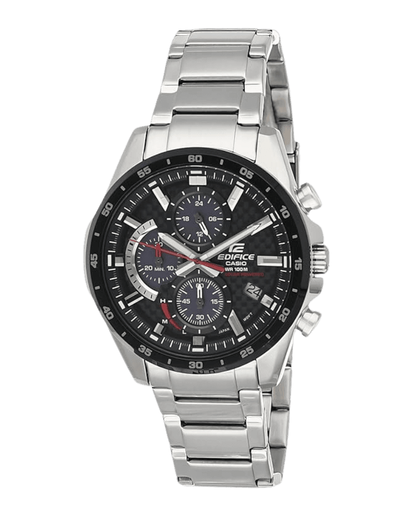 The Casio Edifice EQS-900DB-1AVUDF is a high-performance, solar-powered chronograph watch crafted for modern adventurers. With its sporty design, carbon fiber dial, and tough stainless steel body, it’s an ideal timepiece for anyone who values efficiency, strength, and sharp styling.
