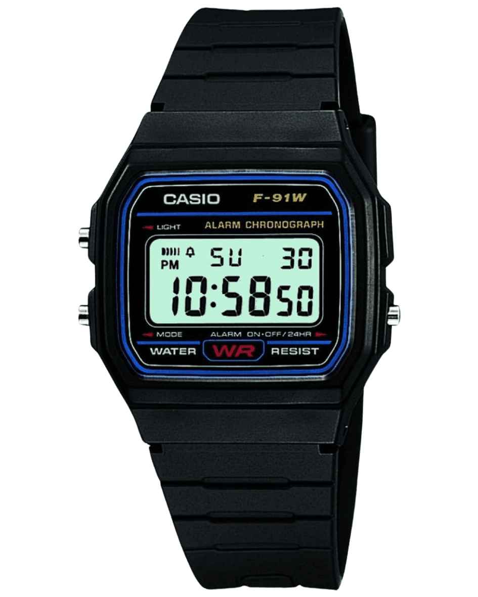 The Casio F-91W-1DG is an affordable classic digital watch that remains a popular choice worldwide for its practicality, minimalistic design, and dependable functionality.