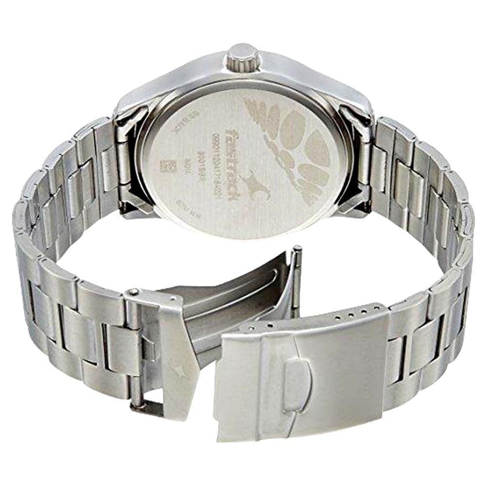 A simple yet stylish addition to your timepiece collection will be this men’s analog watch from Fastrack’s Bare Basics collection. It showcases a silver metal strap and a fold-over clasp that ensures a secure fit on the wrist. The round dial exhibits a stunning blue hue that makes it a must-have. The combination of numbers and minute markers further elevates its look. Wear it with a pair of shorts and a white shirt to look smart.
