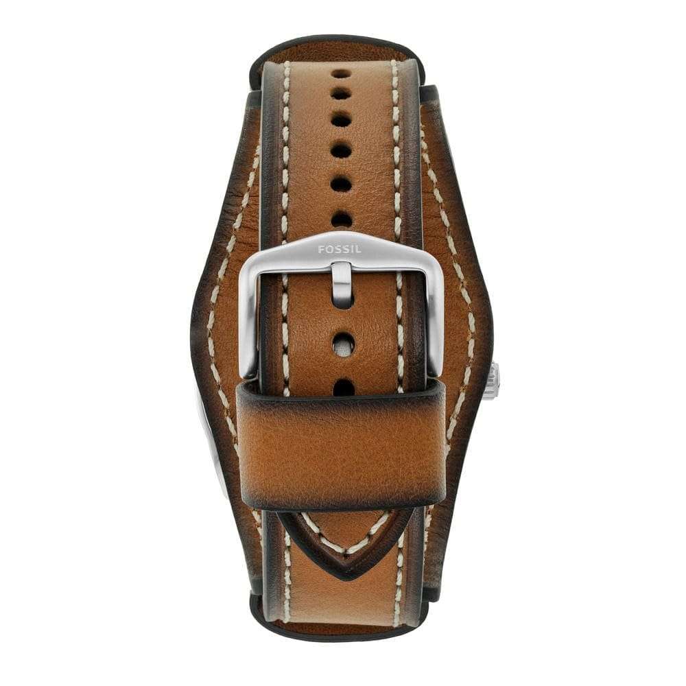 Powered by a reliable quartz movement, the Fossil Machine FS5922 ensures accurate timekeeping with minimal maintenance. The watch is complemented by a durable leather strap, often in a rich brown or black color, providing both comfort and a rugged, masculine touch.